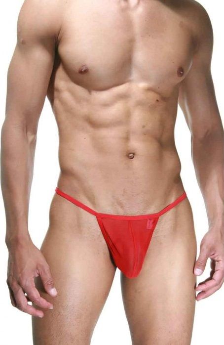 Мужские трусы-стринги, из полупрозрачной ткани. Сзади серебристый декор.