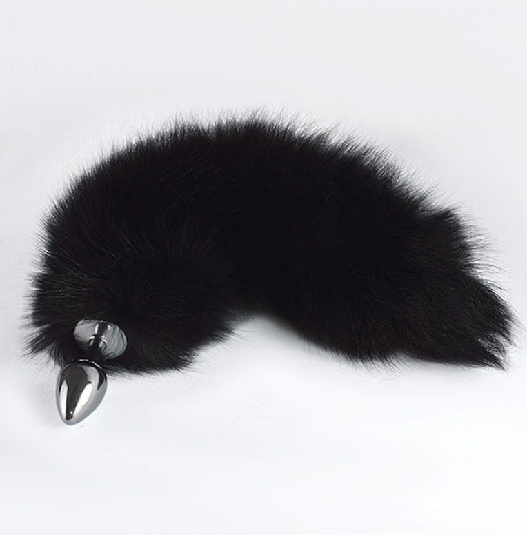Анальный хромированный плуг с натуральным пушистым хвостиком. Длина хвоста - 30 см.